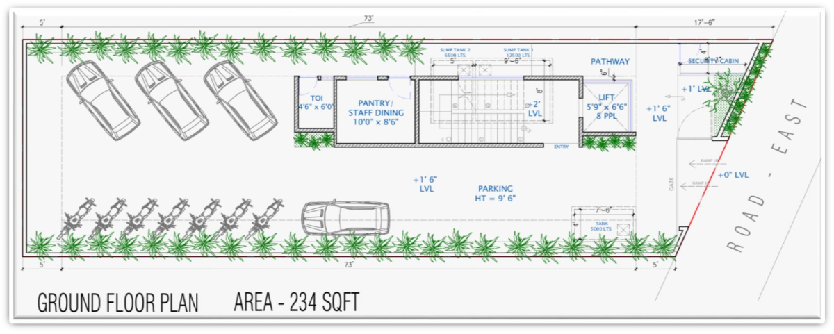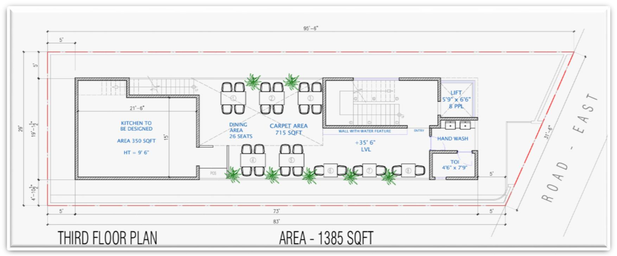 5,548 Sq.ft (Full Civil) G+3 Commercial Cafe Building